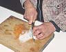 次に柿を使った一寸おしゃれな一品を。先ほど「柿みぞれ」で用意した千切り大根を、同量の酢と味醂に漬けておく。クッキーの型抜きで、柿を丸や星型に切り抜ぬき、器に並べる。その上から漬けておいた大根を適量盛って出来上がり。どちらも手軽で季節感あふれる色鮮やかな小品である。