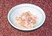 大根、人参をかつらむきにし、それをマッチ棒よりも細くなるように切り刻み、少量の酒に漬けておく。やや硬めの甘柿を用意する。一口大よりやや小さ目に切り、種を取り除いておく。次に大根おろしを用意し、それに市販のシソの漬け汁を少量かける。大根おろしが見事にピンク色に染まる。器に柿を並べ、酒に漬けておいた大根と人参の千切りを盛り、その上からピンクの大根おろしをかけて、出来上がり。柿の黄色と大根と人参の赤と白、そして大根おろしのピンクが見事な色合いを演出してくれる。
